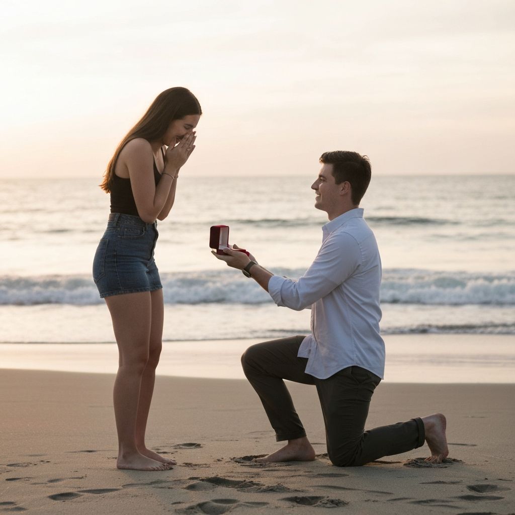Durante una passeggiata al tramonto sulla nostra spiaggia preferita, Sburg ha fatto la domanda più importante della nostra vita.